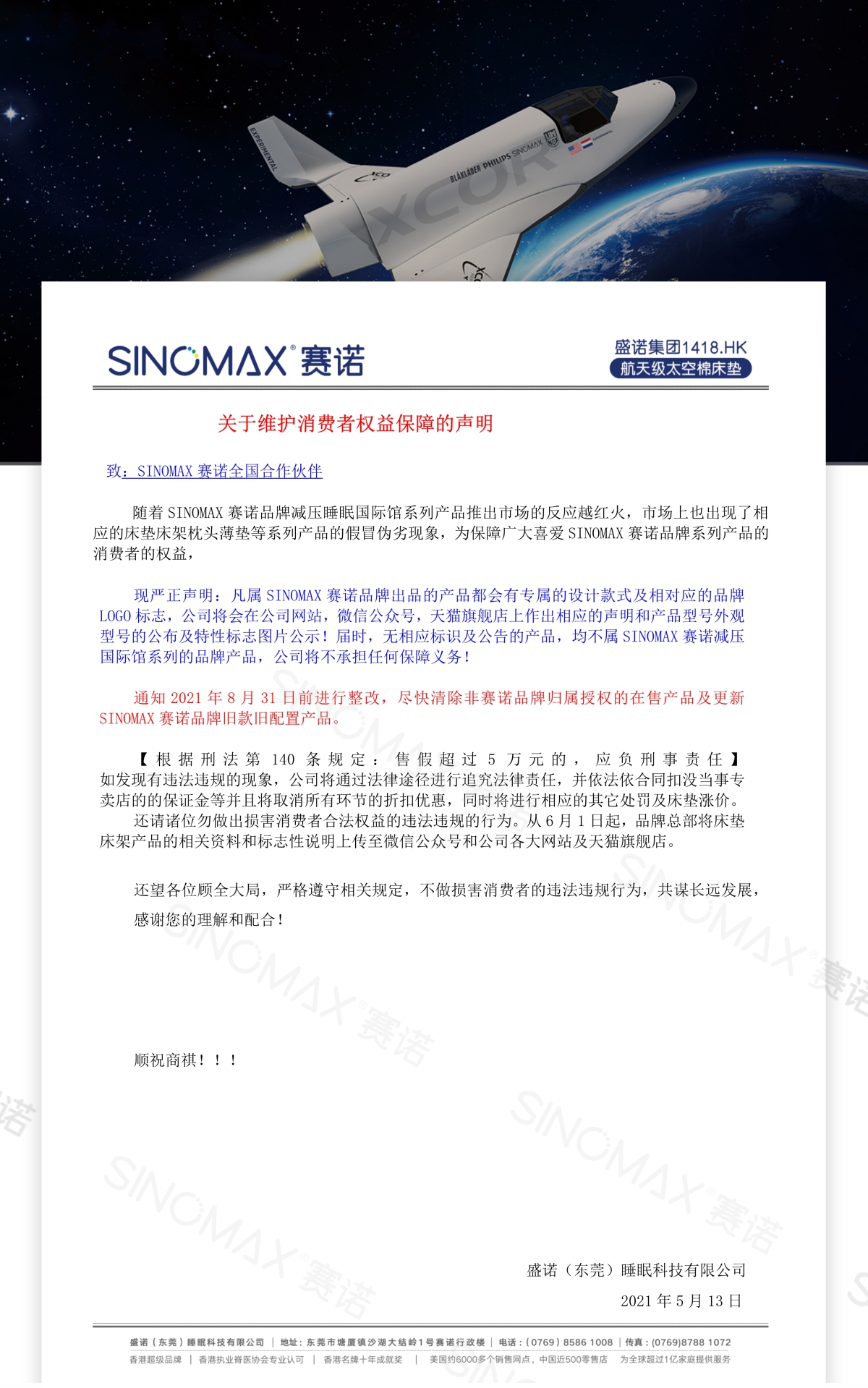 关于防范假冒赛诺床架产品的声明